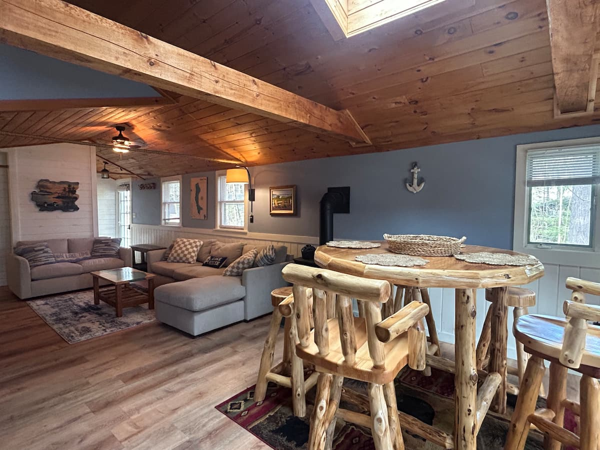 Our home is a cozy, family-orientated lakeside ranch. Just 33 miles from Sugarloaf, immediately on Embden ‘Pond’, the cleanest Lake in Maine, perfect for ice & summer fishing & swimming! Hit the ATV and snowmobile trails from the driveway, private dock & kayaks incl. in summer. Beautiful views of the lake & mountains of the Kennebec Valley.