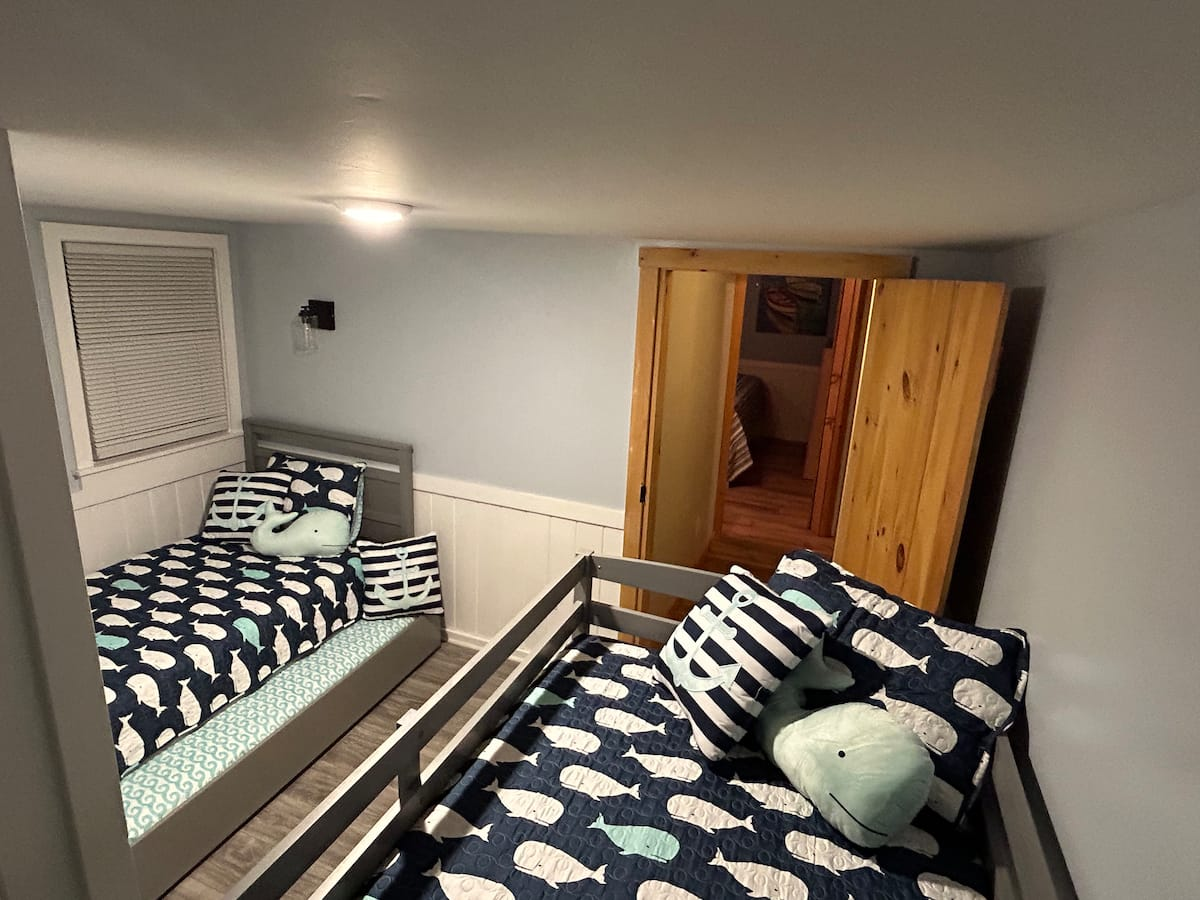 1 bunk room with 4 twin beds